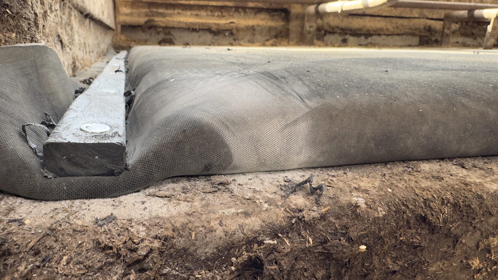 На этой и фотографиях ниже изображены различные этапа монтажа матрасов VelVet HD в коровнике хозяйства ЗАО «Красноозерное» в Приозерском районе Ленинградской области