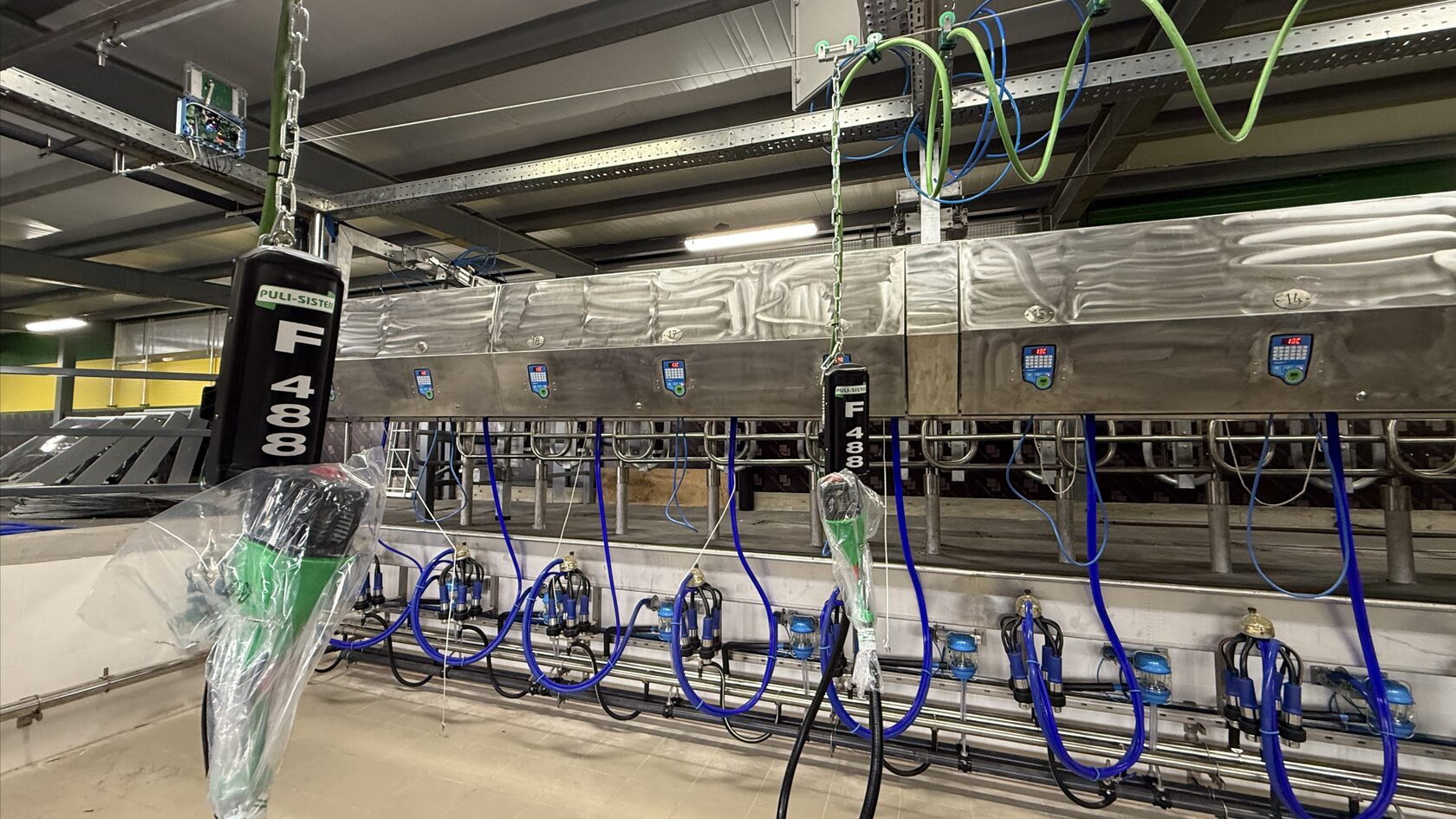 Преддойная подготовка в зале будет происходить с помощью системы обработки вымени Puli-Sistem с двумя скрубберами F488, что улучшит рутину доения и скорость молокоотдачи.