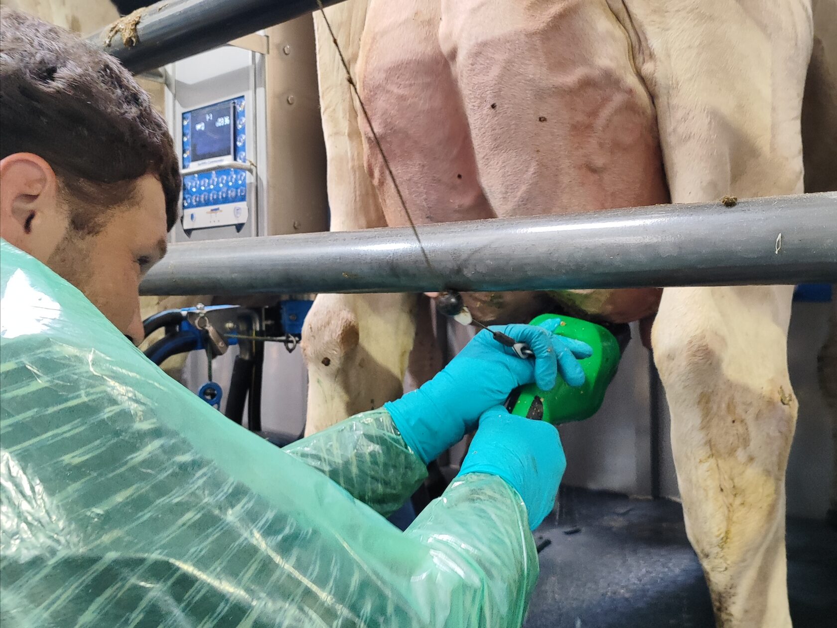 Система Puli-Sistem с двумя скрубберами F488 для обработки сосков интегрирована в доильный зал типа «карусель» на 60 постов и обеспечивает подготовку коров к доению в ходе одной процедуры.